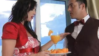 Sexy brunette babe Mona Kim sucking and fucking outdoor